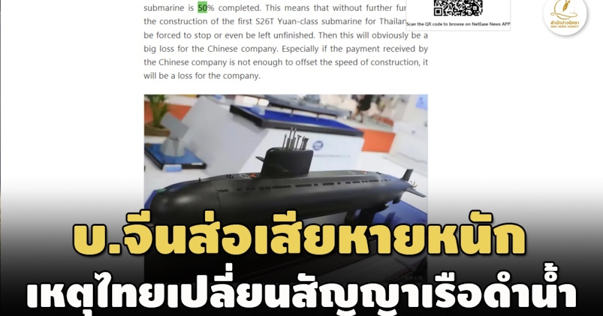 สื่อจีนชี้เหตุ ทร.ไทยเปลี่ยนสัญญาจากเรือดำน้ำเป็นเรือผิวน้ำ ส่อทำเอกชนต่อเรือดำน้ำจีนเสียหายหนัก เพราะต่อเรือไปแล้ว 50% แต่ไม่ได้รับเงินที่เหลือ เผยในอนาคตควรรับเงินเต็มก่อนเริ่มทำงาน