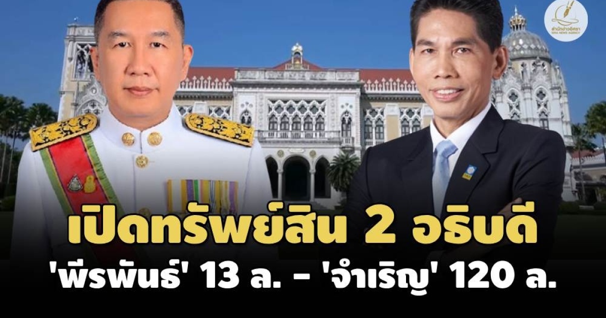 ป.ป.ช.เปิดทรัพย์สิน 2 อธิบดี 'พีรพันธ์ คอทอง' อธิบดีกรมส่งเสริมการเกษตร มีทรัพย์สิน 13 ล. มีที่ดิน 3 แปลง รายได้ 2.7 ล./ปี ส่วน 'จำเริญ โพธิยอด' อธิบดีอธิบดีกรมธนารักษ์ มีทรัพย์สินกว่า 120 ล. เงินฝาก 44 ล.เงินลงทุน 31 ล. สะสมทองคำแท่งหนัก 20 บาท 2 แท่ง รายได้ 8.9 ล./ปี