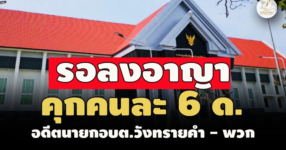ป.ป.ช.เผยแพร่ความคืบหน้าผลคดีกล่าวหา 'ประสิทธิ์ สมงอน' อดีตนายกอบต.วังทรายคำ ลำปาง พิจารณาจ่ายเงินโบนัส พนง.โดยมิชอบ ล่าสุด ศาลอาญาคดีทุจริตประพฤติมิชอบภาค 5 พิพากษาลงโทษจำคุก พร้อมพวกรวม 6 ราย คนละ 6 เดือน หลังรับสารภาพ ผู้กล่าวหาไม่ติดใจเอาความ รอลงอาญา 3 ปี