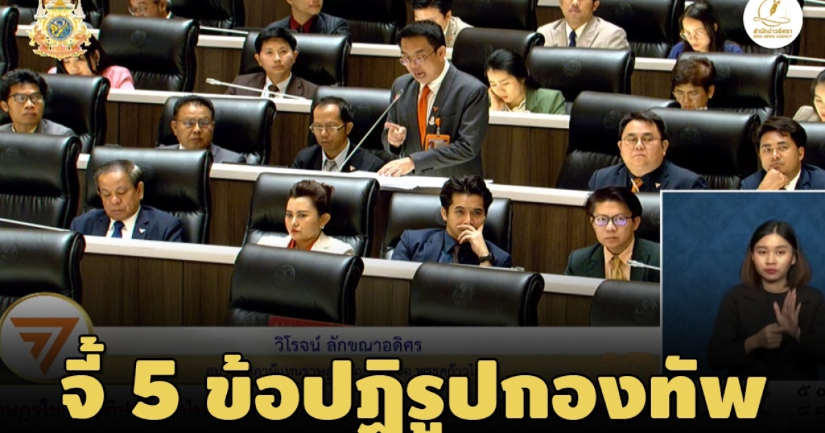 โดยนายวิโรจน์ ลักขณาอดิศร สส.บัญชีรายชื่อ พรรคก้าวไกลได้อภิปรายถึง ปัญหาการบริการงานกองทัพด้วยกัน 5 เรื่องได้