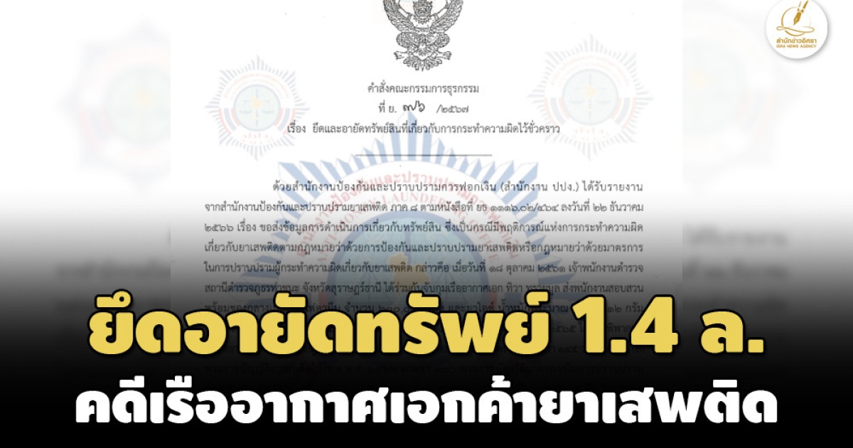 ปปง.ยึดอายัดทรัพย์ได้ 27 รายการ 1.4 ล. คดีเรืออากาศเอก ทิวา ทรายมูล กับพวก ค้าแอมเฟตามีน ยาไอซ์ ปปส.ภาค 8 ร่วม ตร.สภ.ท่าชนะ จ.สุราษฎร์ธานี ส่งศาลพิพากษาแล้ว