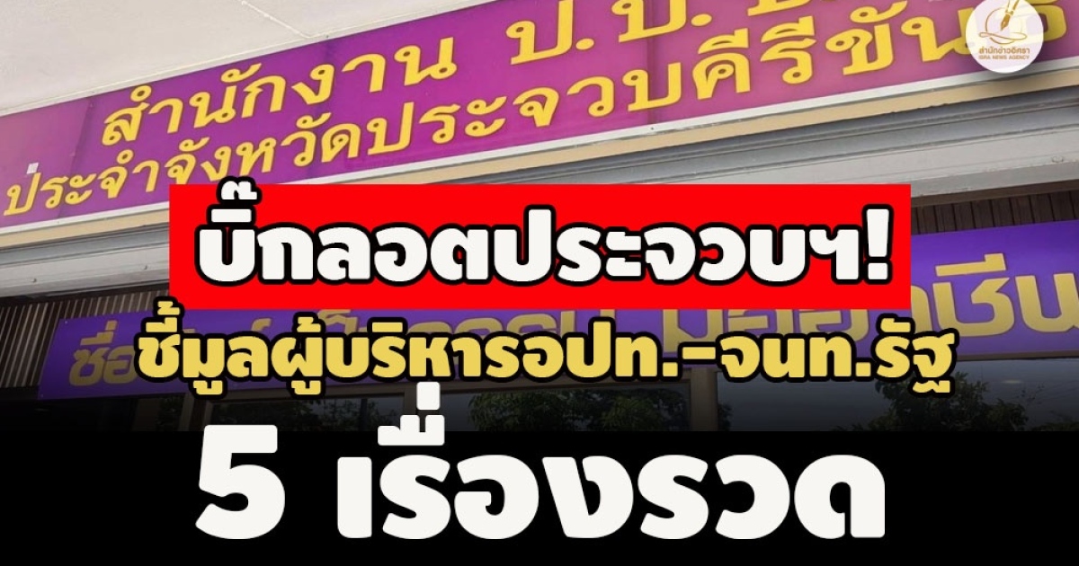 สำนักข่าวอิศรา (www.isranews.org) รายงานว่า เมื่อวันที่ 5 เม.ย.2567 สำนักงานคณะกรรมการป้องกันและปราบปรามการทุจริตแห่งชาติ (ป.ป.ช.) ประจำจังหวัดประจวบคีรีขันธ์ ได้เผยแพร่ข่าวมติคณะกรรมการ ป.ป.ช. ชี้มูลความผิดผู้บริหารองค์กรปกครองส่วนท้องถิ่น (อปท.) และเจ้าหน้าที่รัฐ จำนวน 5 เรื่อง