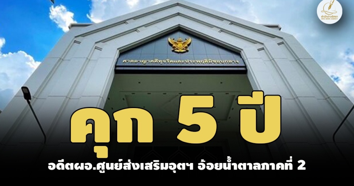 ป.ป.ช.เผยแพร่ความคืบหน้าผลคดีกล่าวหา 'สมคิด บรรยาย' อดีตผอ.ศูนย์ส่งเสริมอุตสาหกรรมอ้อยน้ำตาลภาคที่ 2 เรียกรับเงินจัดซื้อจ้างโครงการต่างๆ ล่าสุด ศาลอาญาคดีทุจริตประพฤติมิชอบกลาง พิพากษาลงโทษจำคุก 5 ปี ไม่รอลงอาญา