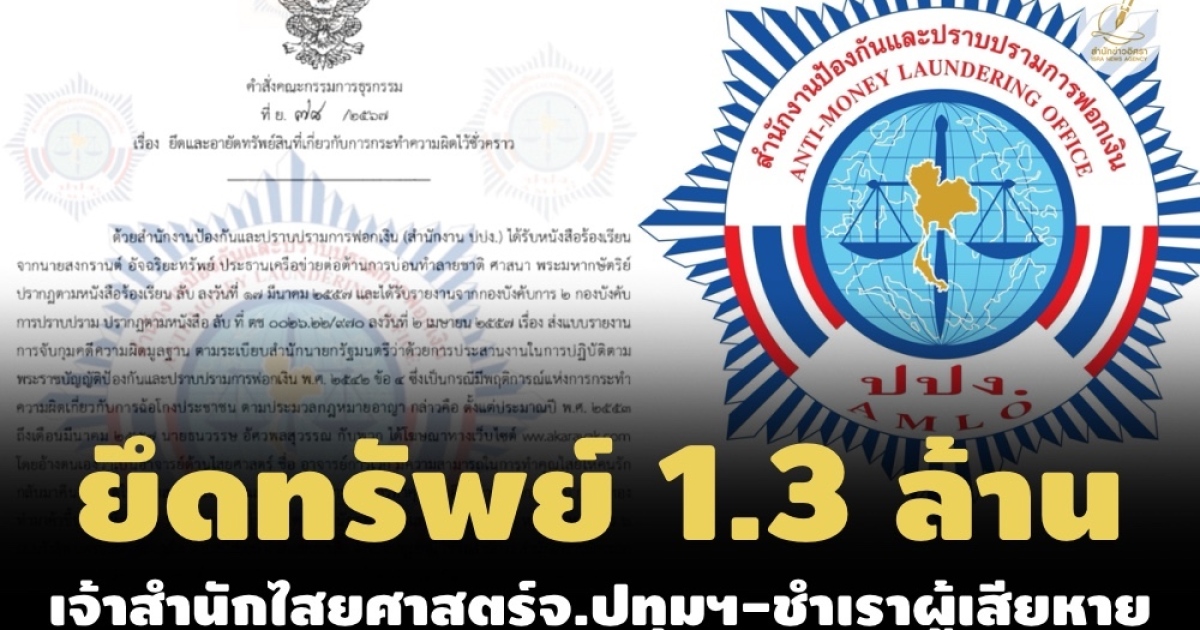 ปปง.ยึดอายัดทรัพย์ ที่ดิน เงินฝาก 7 รายการ 1.3 ล. เจ้าสำนักการเวกเทพหน้าทองอาจารย์ไสยศาสตร์ชื่อดัง จ.ปทุมธานี ฉ้อโกงปชช. อ้างทำให้คนรักกลับมาคืนดีกันใน 3-7 วัน แฉพฤติกรรมเรียกเงิน หลอกชำเราผู้เสียหายหญิง ให้ภรรยา 3 คนชำเราผู้เสียหายชาย แจ้งความ 8 ราย หมด 2 ล. ศาลตัดสินจำคุก