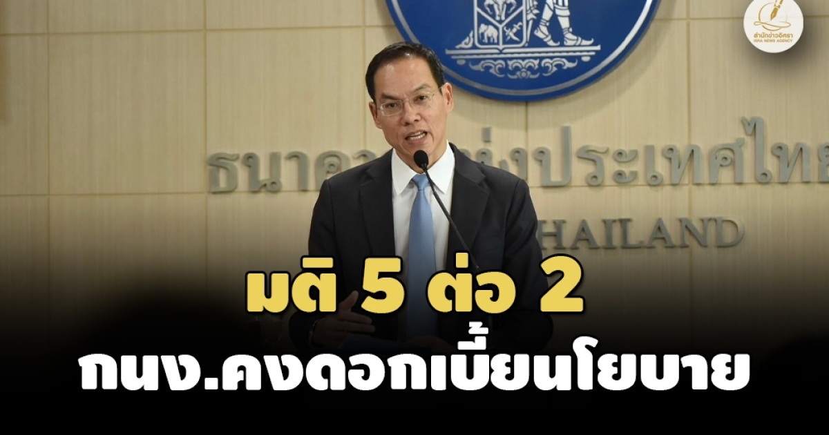 มติเอกฉันท์! กนง.คงดอกเบี้ยนโยบาย 2.5%-หั่นคาดการณ์จีดีพีปีนี้เหลือ 2.4%