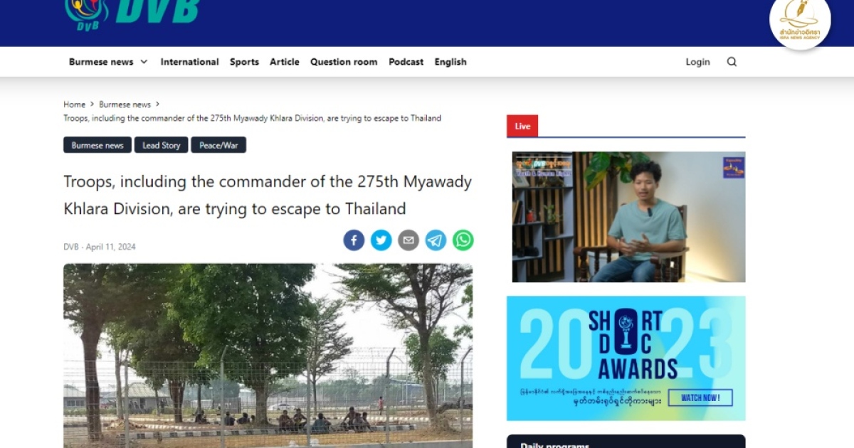 สำนักข่าวอิศรา (www.israews.org) รายงานข่าวสถานการณ์การสู้รบในเมียนมาอ้างอิงข่าวจากสื่อฝ่ายประชาธิปไตยของเมียนมาว่ากองทัพปลดปล่อยชาติกะเหรี่ยงหรือ KNLA ได้รายงานว่ากองกำลังจำนวน 200 นาย รวมถึงผู้บัญชาการกองพันที่ 275 ของกองกำลังพิทักษ์เมืองเมียวดีได้ถอนกำลังไปแล้วเนื่องจากการโจมตีของกองกำลังติดอาวุธของรัฐบาลเงา (PDF) สนธิกำลังกับกองกำลังปฏิวัติร่วม โดยการโจมตีเกิดขึ้นที่บริเวณสะพานมิตรภาพไทย-เมียนมาหลายเลข 2 และมีรายงานว่ากองกำลังฝ่ายทหารเมียนมาที่หนีไปนั้นกำลังพยายามเจรจากับทางการไทยเพื่อขอข้ามไปยังฝั่งไทย