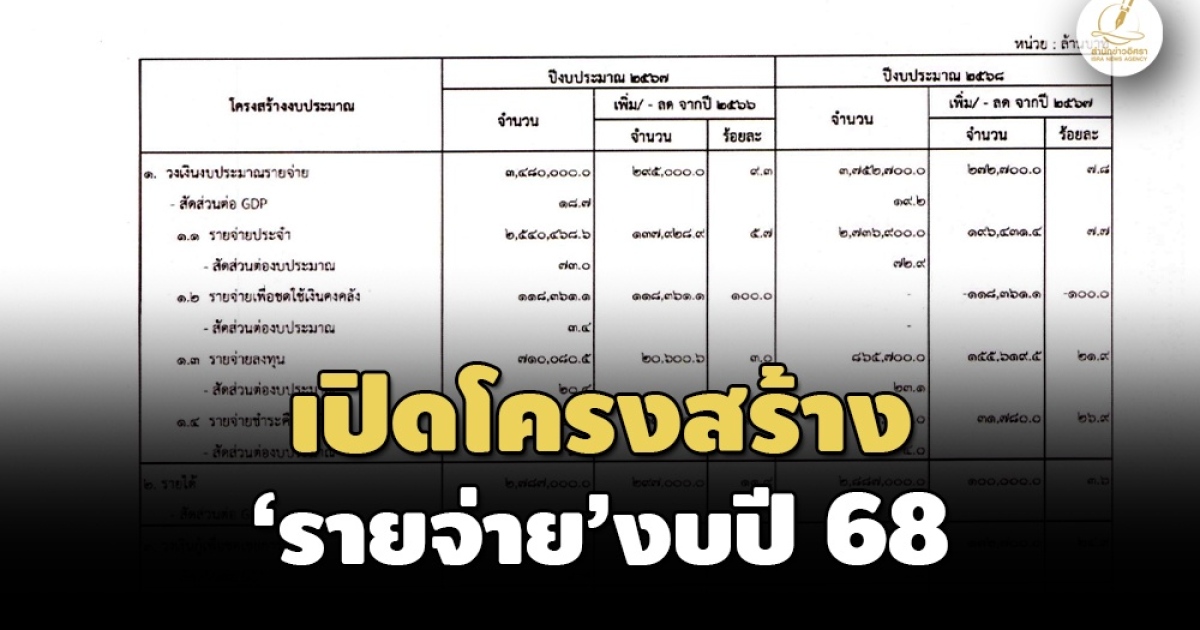 เพิ่มรายจ่ายปีงบ 68 เป็น 3.75 ล้านล.! ครม.ไฟเขียว‘แผนการคลังระยะปานกลาง’ฉบับใหม่