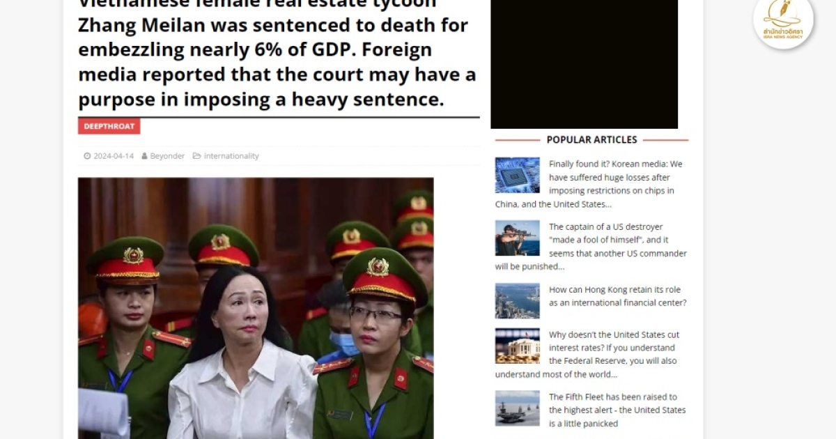 สำนักข่าวอิศรา (www.isranews.org) รายงานข่าวกรณีศาลในนครโฮจิมินห์ซิตี้สั่งตัดสินประหารชีวิตนาง Truong My Lan วัย 67 ปี นักธุรกิจและนักพัฒนาอสังหาริมทรัพย์ชาวเวียดนาม ฐานฉ้อโกงเงินจากธนาคารที่ใหญ่ที่สุดแห่งหนึ่งของประเทศเป็นเวลายาวนานถึง 11 ปี ในข้อหาฉ้อโกงเงินกู้มูลค่ารวม 44,000 ล้านดอลลาร์สหรัฐฯ (1.6 ล้านล้านบาท) จากธนาคารพาณิชย์ไซ่ง่อน (Saigon Commercial Bank)