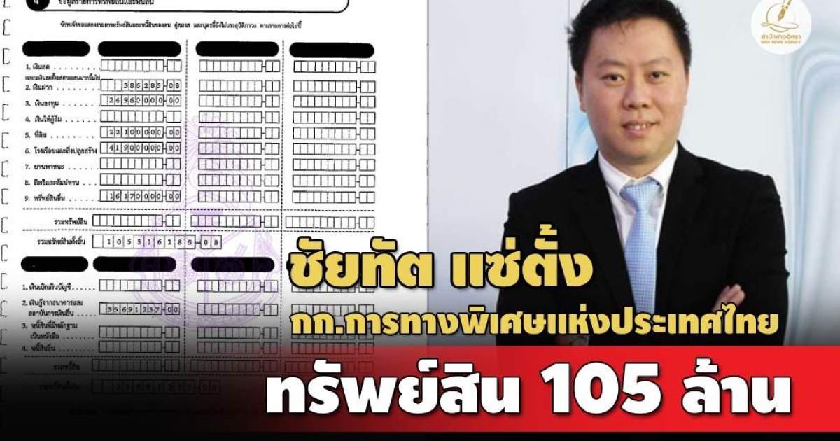 ป.ป.ช. เปิดทรัพย์สิน 'ชัยทัต แซ่ตั้ง' กรรมการการทางพิเศษแห่งประเทศไทย มีทรัพย์สินกว่า 105 ล. เงินลงทุน 24 ล. ที่ดิน 4 แปลง มูลค่า 22 ล. รายได้ 6.1 ล./ปี