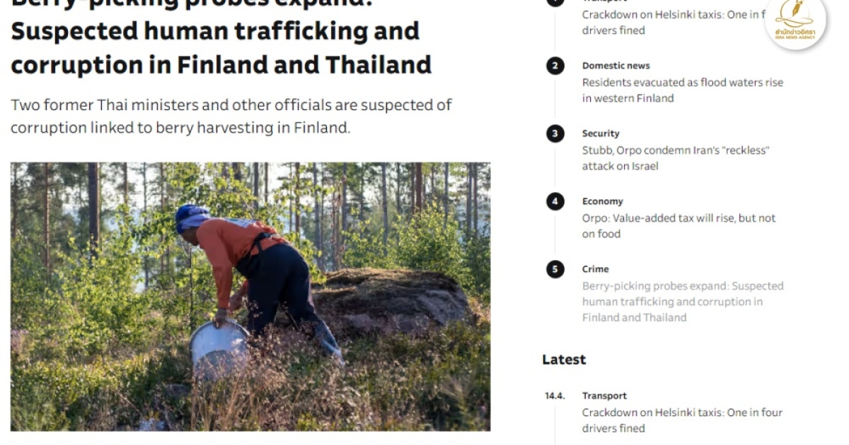 ตร.ฟินแลนด์ขยายผลคดีค้ามนุษย์ผ่านแรงงานเก็บเบอร์รี่ไทย พบเอกชนฟินแลนด์รายใหม่ส่อมีส่วนเกี่ยวข้อง-ส่งหลักฐานปมเส้นเงินเอี่ยวอดีต รมต.แรงงานให้ทางการไทยแล้ว