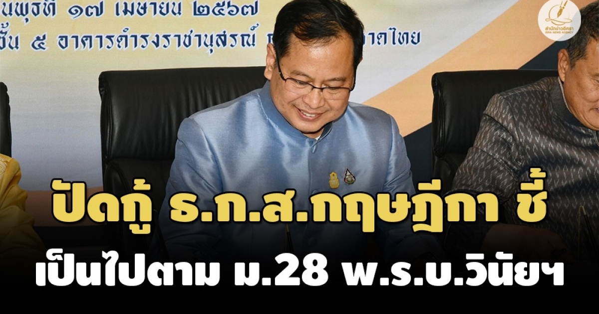 ‘ปกรณ์ นิลประพันธ์’ เลขากฤษฎีกา แจงสื่อรัฐบาลไม่ได้บอกจะกู้ ธ.ก.ส. 1.7 แสนล้าน แค่ทำตามมาตรา 28 พ.ร.บ.วินัยการเงินฯ โดยใช้เงินที่เกี่ยวกับเกษตรกรเท่านั้น โยน ‘คลัง’ แจงถ้าไม่เอาเงิน ธ.ก.ส. ใช้เงินอะไรแทน