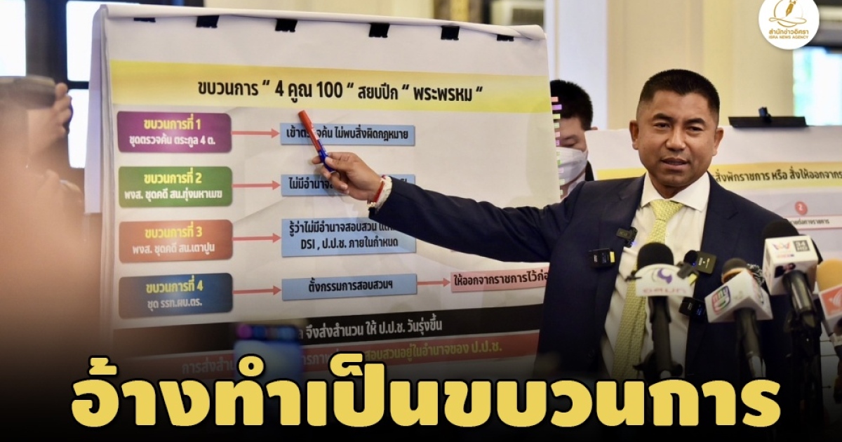 โดยพล.ต.อ.สุรเชษฐ์ ได้นำแผนผังชื่อว่า "ขบวนการ 4 คูณ 100 สยบ ปีกพระพรหม" มาประกอบการให้สัมภาษณ์ และยืนยันว่ามีการทำเป็นขบวนการประกอบด้วย 4 ชุด คือ 1.ชุดตรวจค้นบ้าน ตระกูลสี่ ต.เต่า (ต่อ เต่า ตุ้ม ไตร) 2. พนักงานสอบสวนชุดคดีสถานีตำรวจนครบาล(สน.)ทุ่งมหาเมฆ, 3.พนักงานสอบสวนชุดคดี สน.เตาปูน และ4.ชุดรักษาราชการแทนผู้บัญชาการตำรวจแห่งชาติ(รรท.ผบ.ตร.) ที่ร่วมกันทำเป็นขบวนการตั้งแต่การเข้าตรวจคนบ้าน การใช้อำนาจสอบสวน นำไปสู่การออกหมายเรียก หมายจับ จากนั้น รรท.ผบ.ตร.ตั้งคณะกรรมการสอบสวนและมีคำสั่งให้ตนออกจากราชการไว้ก่อนเมื่อวันที่ 18 เม.ย.และนำส่งสำนวนให้สำนักงานคณะกรรมการป้องกันและปราบปรามการทุจริตแห่งชาติ(ป.ป.ช.)วันที่ 19 เมษายน