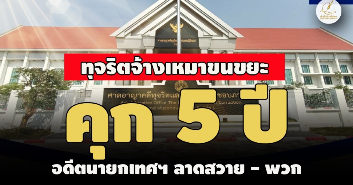 เผยแพร่ความคืบหน้าผลคดีกล่าวหา 'เฉลิมพล เจษฎางกูล ณ อยุธยา' อดีตนายกเทศมนตรีเมืองลาดสวาย ปทุมธานี ทุจริตจ้างเหมาขนขยะมูลฝอย ล่าสุด ศาลอาญาคดีทุจริตประพฤติมิชอบภาค 1 พิพากษาลงโทษ คุก 5 ปี พร้อมพวก 1 ราย ที่เหลือโดน 3 ปี 4 เดือน ปรับ 8 หมื่น ยกฟ้อง 1 คน - ป.ป.ช.ขอ อสส.อุทธรณ์สู้ต่อ