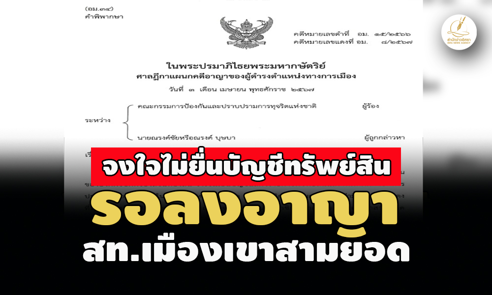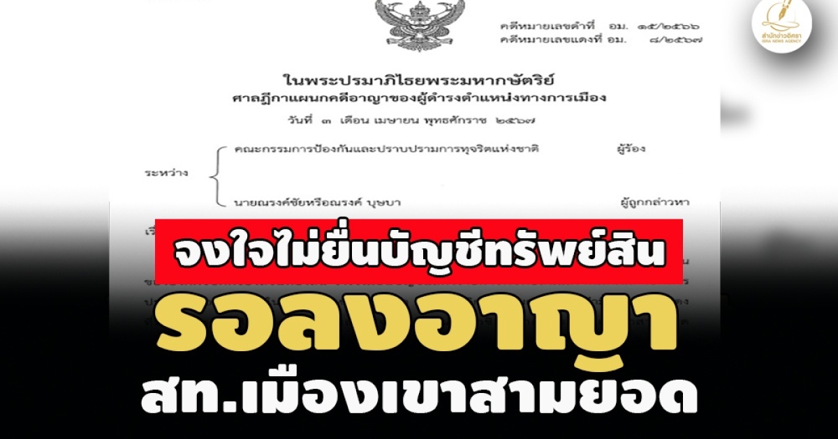 - ศาลฎีกาฯสั่งเพิกถอนสิทธิสมัครรับเลือกตั้งตลอดชีพ นายก ทต.ขวาว จงใจไม่ยื่นบัญชีฯ