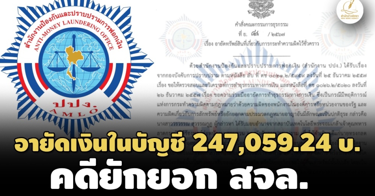 สำนักข่าวอิศรา (www.isranews.org) รายงานว่า วันที่ 10 เม.ย.2567 สำนักงานป้องกันและปราบปรามการฟอกเงิน (สำนักงาน ปปง.) มีคำสั่งคณะกรรมการธุรกรรมที่ ย.88 / 2567 เรื่อง อายัดทรัพย์สินที่เกี่ยวกับการกระทำความผิดไว้ชั่วคราวคดีนายทรงกลด ศรีประสงค์ นางสาวอำพร น้อยสัมฤทธิ์ และบุคคลอื่นที่เกี่ยวข้อง ในความผิดฐานลักทรัพย์ ปลอมและใช้เอกสารสิทธิปลอม และเป็นเจ้าพนักงานมีหน้าที่ซื้อ ทำ จัดการ หรือรักษาทรัพย์ใด เบียดบังทรัพย์นั้นเป็นของตนหรือของผู้อื่นโดยทุจริต หรือโดยทุจริตยอมให้ผู้อื่นเอาทรัพย์นั้นไปเสีย โดยเป็นความผิดตามประมวลกฎหมายอาญา และพระราชบัญญัติว่าด้วยความผิดของพนักงานในองค์การหรือหน่วยงานของรัฐ โดยเป็นการอายัดทรัพย์สิน จำนวน 1 รายการ พร้อมดอกผล คือ เงินหลักประกันคงเหลือในบัญชีซื้อขายหลักทรัพย์ของบริษัทหลักทรัพย์กสิกรไทย จํากัด (มหาชน) เลขที่ 044796-7 ชื่อบัญชี นายกิตติศักดิ์ มัทธุจัด จำนวน 247,059.24 บาท มีกําหนดไม่เกิน 90 วันนับตั้งแต่วันที่ คณะกรรมการธุรกรรมมีมติ คือ วันที่ 10 เมษายน 2567 ถึงวันที่ 8 กรกฎาคม 2567 ให้รวมถึงเงินหรือทรัพย์สินที่ได้มาจากการจำหน่าย จ่าย โอนด้วยประการใดๆทั้งปวงซึ่งทรัพย์สินดังกล่าวหรือสิทธิเรียกร้องหรือผลประโยชน์ หรือดอกผลของเงินหรือทรัพย์สินดังกล่าวด้วย