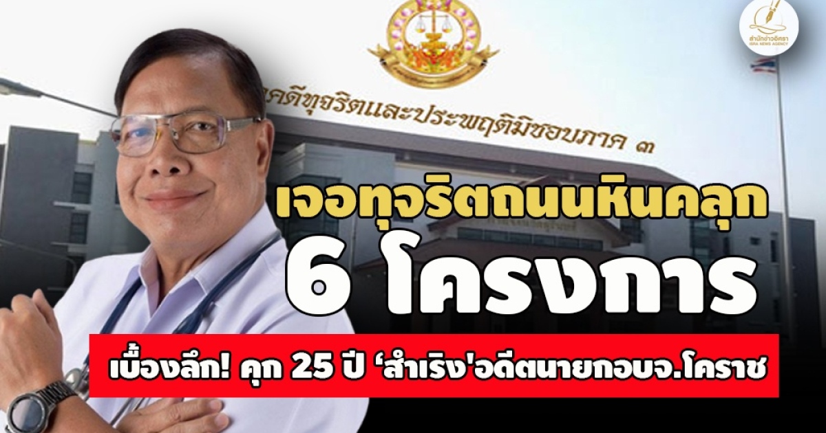 'อิศรา' สอบยันคำพิพากษาคดีถนนหินคลุก อบจ.โคราช ชนวนเหตุ 'สำเริง แหยงกระโทก' อดีตนายกฯ โดนคุก 25 ปี พบเจอทุจริต 6 โครงการรวด งานสัญญาบ้านโคกวังวนไม่ดำเนินการ 'ถมดิน' ตามขั้นตอน