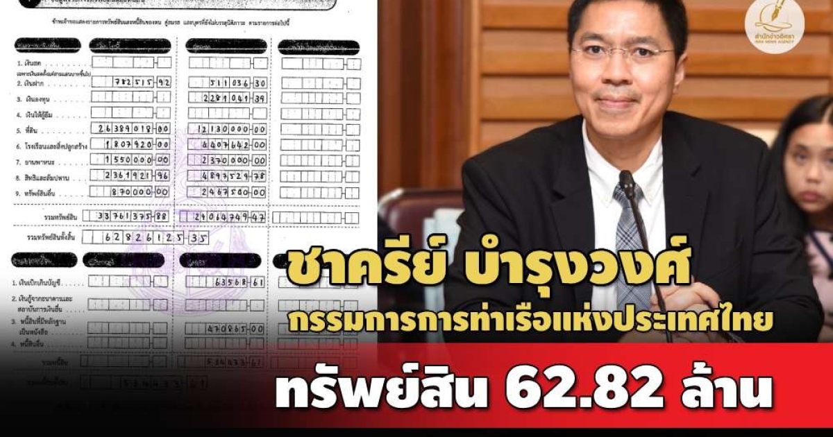 ป.ป.ช.เปิดทรัพย์สิน 'ชาครีย์ บำรุงวงศ์' กรรมการการท่าเรือแห่งประเทศไทย มีทรัพย์สินกว่า 62.82 ล.ที่ดิน 15 แปลง สะสมแหวนเพชร-นาฬิกา รายได้ 1.2 ล./ปี