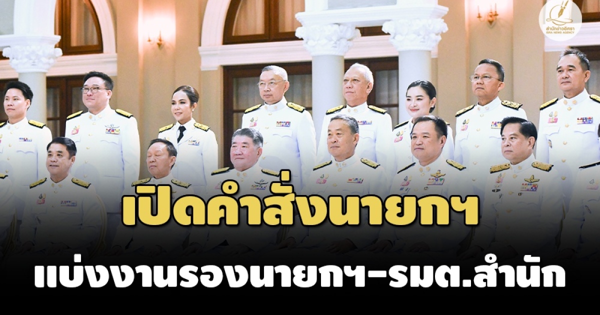 ครม.รับทราบคำสั่งนายกฯว่าด้วยการแบ่งงาน 6 รองนายกฯ - 3 รมต.สำนักนายกฯ ‘ภูมิธรรม’ รองนายกฯอันดับ 1 ผ่าหน่วยงานภายใต้สังกัดทั้งหมด