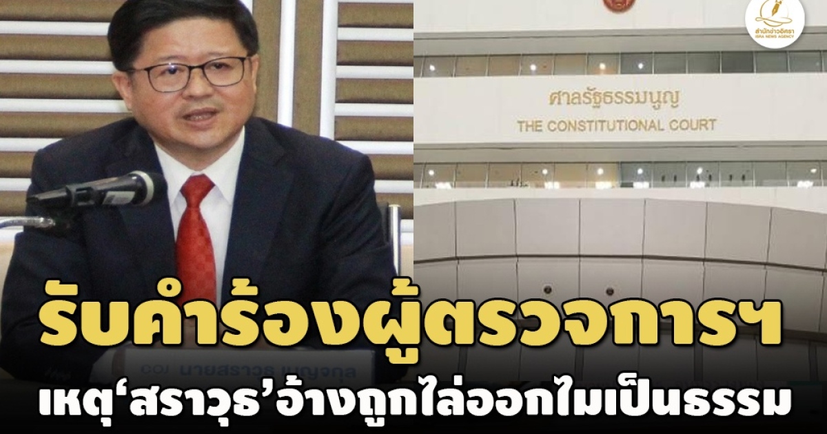 ศาลรัฐธรรมนูญมีมติรับคำร้องผู้ตรวจการฯ เหตุ 'สราวุธ' อ้างถูก ก.ต.ลงมติไล่ออกไม่เป็นธรรมปมเดินหน้าโครงการปรับปรุงศาลพระโขนง ทำสัญญาปรับปรุงศาลตลิ่งชัน-มีนบุรีไม่โปร่งใส ชี้ชัดคดีมีปัญหา พยานหลักฐานพอวินิจฉัยได้-นัด 5 มิ.ย. ลงมติ