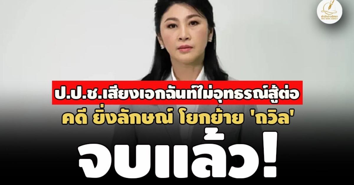 ป.ป.ช.เสียงเอกฉันท์เห็นชอบ ตาม อสส. ไม่ยื่นอุทธรณ์สู้คดี 'ยิ่งลักษณ์ ชินวัตร' โยกย้าย 'ถวิล เปลี่ยนศรี' พ้นตำแหน่งเลขาฯ สมช.แล้ว หลังศาลฎีกาแผนกคดีอาญาผู้ดำรงตำแหน่งทางการเมืองยกฟ้อง