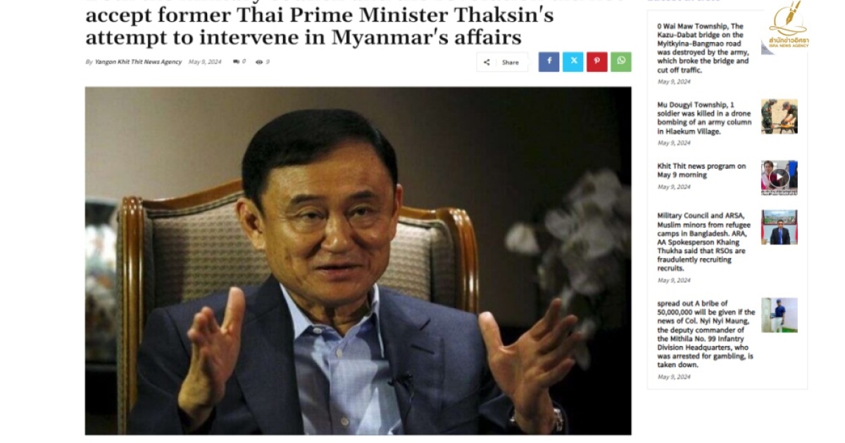 สำนักข่าวอิศรา (www.isranews.org) รายงานข่าวอ้างอิงจากสื่อเมียนมาว่าทั้งสภาทหารเมียนมาและกลุ่มชาติพันธุ์ที่ต่อต้านรัฐบาลทหารเมียนมาต่างออกมาสื่อสารว่าไม่ยอมรับความพยายามของนายทักษิณ ชินวัตร อดีตนายกรัฐมนตรีในความพยายามที่จะเข้ามาแทรกแซงกิจการทหารเมียนมา