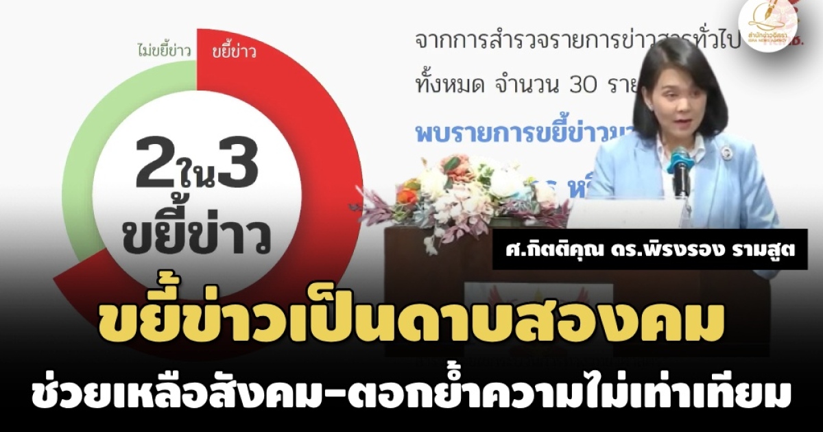 กสทช.เผย 2 ใน 3 รายการข่าว เป็นรายการขยี้ข่าว ชี้เป็นดาบสองคมทั้งช่วยเหลือสังคม-ตอกย้ำความไม่เท่าเทียม