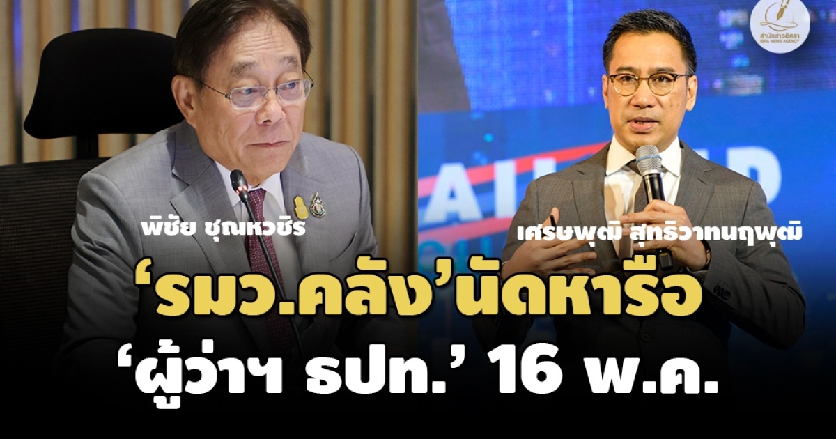 เมื่อวันที่ 10 พ.ค. แหล่งข่าวจากกระทรวงการคลัง เปิดเผยกับสำนักข่าวอิศรา (www.isranews.org) ว่า นายพิชัย ชุณหวชิร รองนายกรัฐมนตรี และรมว.คลัง ได้นัดหมายให้นายเศรษพุฒิ สุทธิวาทนฤพุฒิ ผู้ว่าการธนาคารแห่งประเทศไทย (ธปท.) เข้าพบในวันที่ 16 พ.ค.นี้ หลังจากนายเศรษฐพุฒิ เดินทางกลับจากต่างประเทศในวันที่ 15 พ.ค.