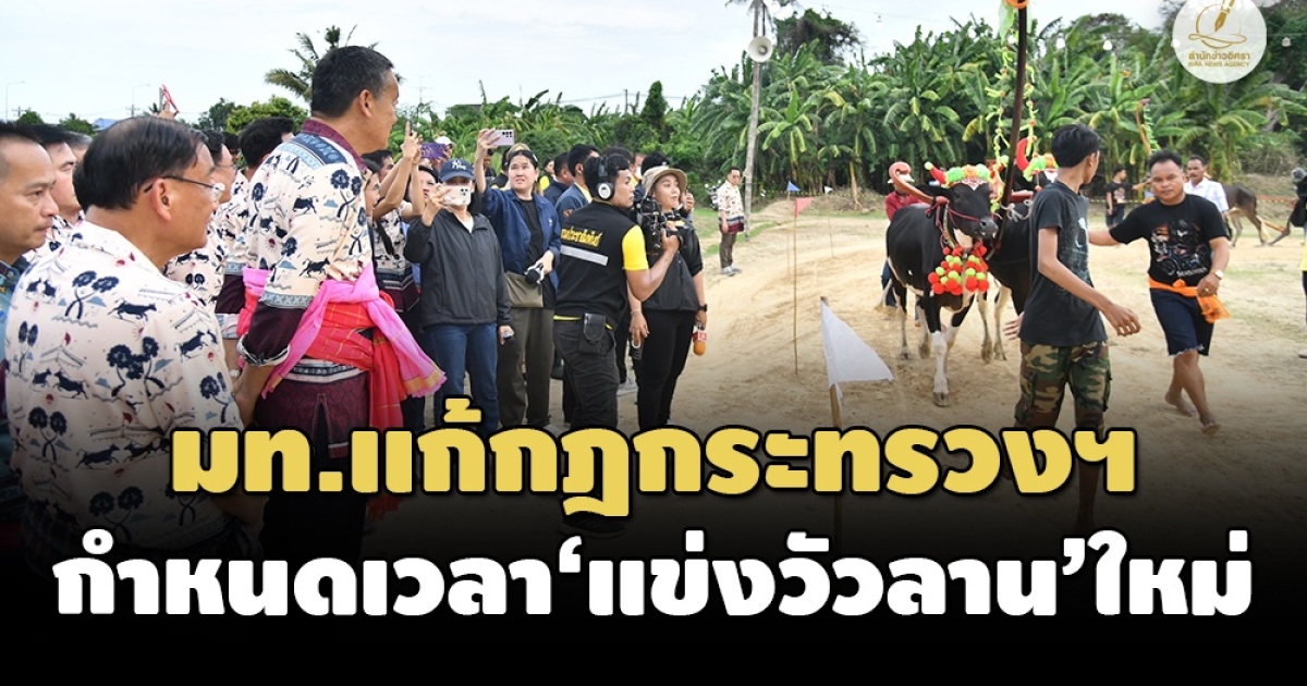 ‘ก.มหาดไทย’ สนองนโยบาย ‘นายกฯเศรษฐา’ เดินหน้าแก้ไขกฎกระทรวงฯ กำหนดเวลาแข่งขันกีฬา ‘วัวลาน’ เป็น 18.00 น. ถึง 6.00 น. ของวันรุ่งขึ้น เพื่อให้สอดคล้องกัน ‘วัฒนธรรมท้องถิ่น’ ที่นิยมเล่นแข่ง 'วัวลาน' เวลากลางคืน