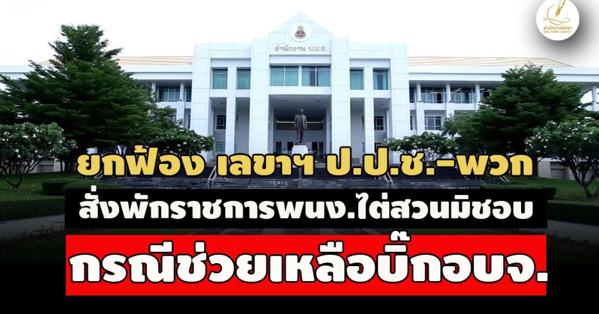 ศาลอาญาคดีทุจริตฯ ยกฟ้อง เลขาฯ ป.ป.ช.-พวก คดีสั่งพักราชการพนักงานไต่สวนระดับสูงมิชอบ กรณีถูกกล่าวหาช่วยเหลือบิ๊ก อบจ. ชี้เป็นการใช้อำนาจโดยชอบ เผยเหตุลุยฟ้องเทียบเคียง 3 จนท. โดนกล่าวโทษช่วยบิ๊กตร.ตกแต่งบัญชีทรัพย์สิน แค่โดนสั่งย้าย - เผยมี 4 ราย เอี่ยว ถูกปลดออกจากราชการไปแล้ว 1 คน