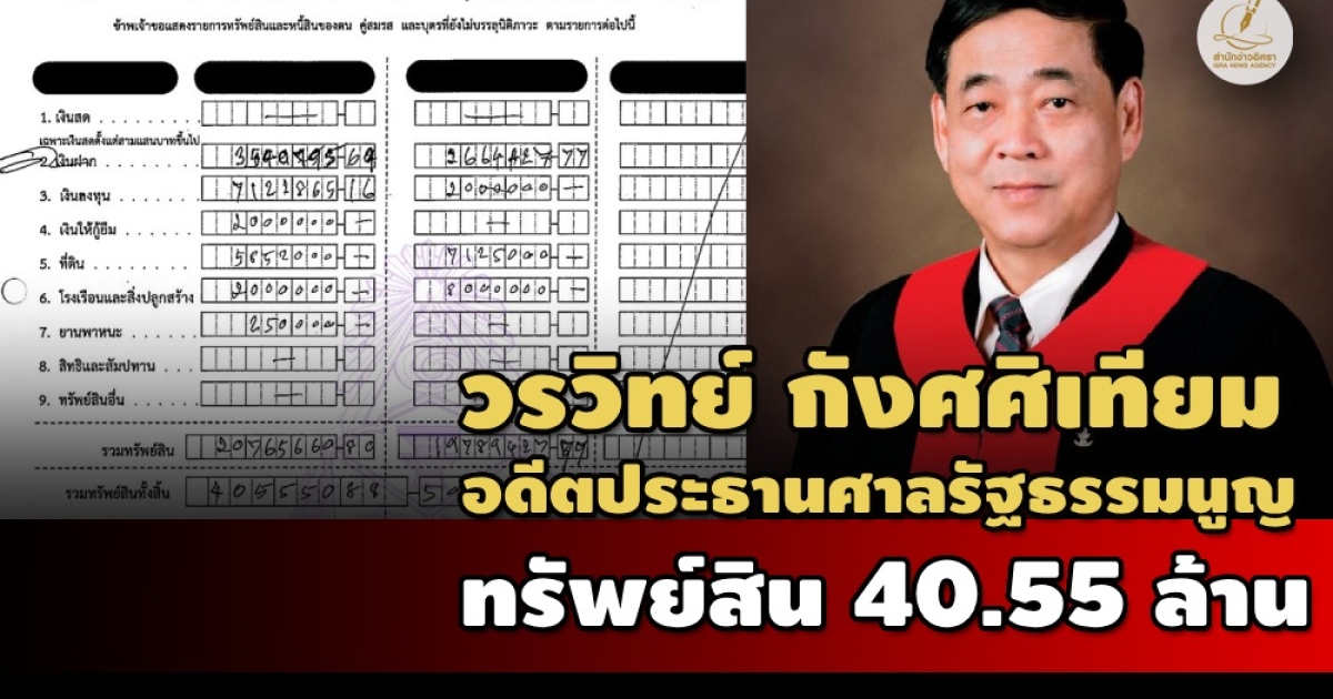 ป.ป.ช.เปิดทรัพย์สิน 'วรวิทย์ กังศศิเทียม' อดีตประธานศาลรัฐธรรมนูญ มีทรัพย์สินกว่า 40.55 ล้านบาท ไร้หนี้สิน