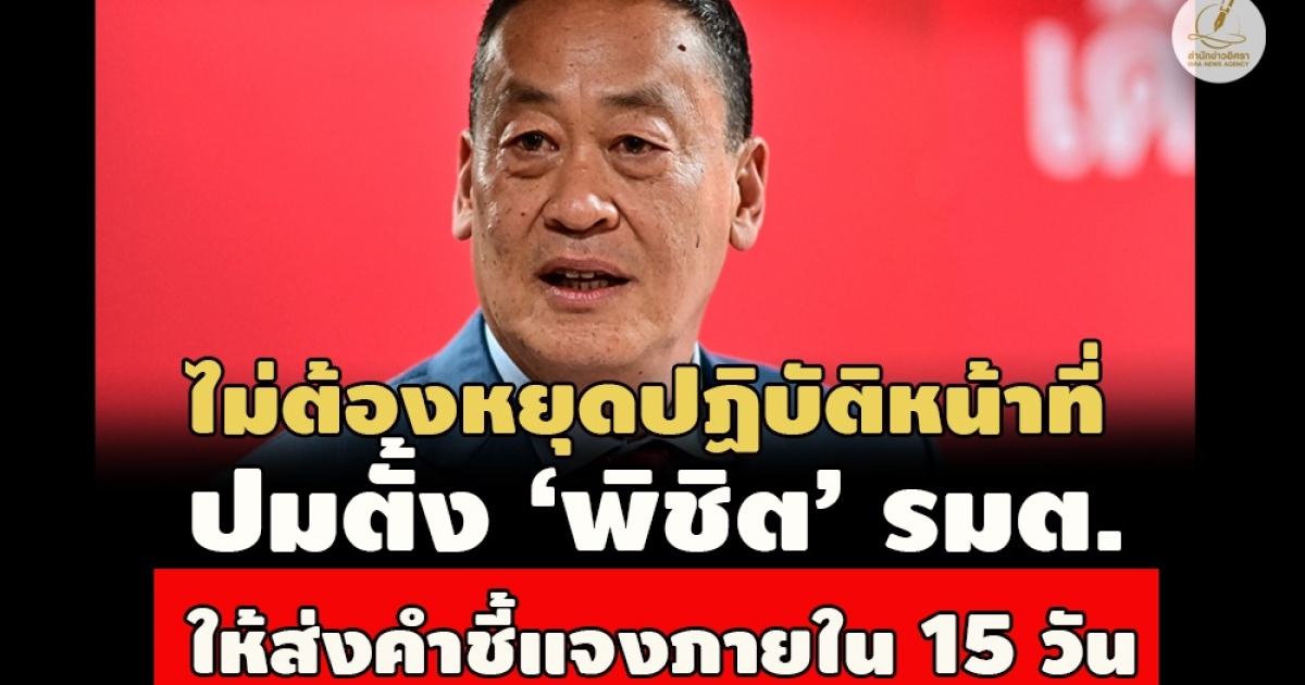 ศาล รธน. มีมติ 5 ต่อ 4 'เศรษฐา' ไม่ต้องหยุดปฏิบัติหน้าที่ ปมตั้ง 'พิชิต ชื่นบาน' เป็นรัฐมนตรี ขีดเส้น 15 วัน ส่งเอกสารชี้แจงข้อกล่าวหา หลังถูก 40 สว.ยื่นสอบคุณสมบัติ