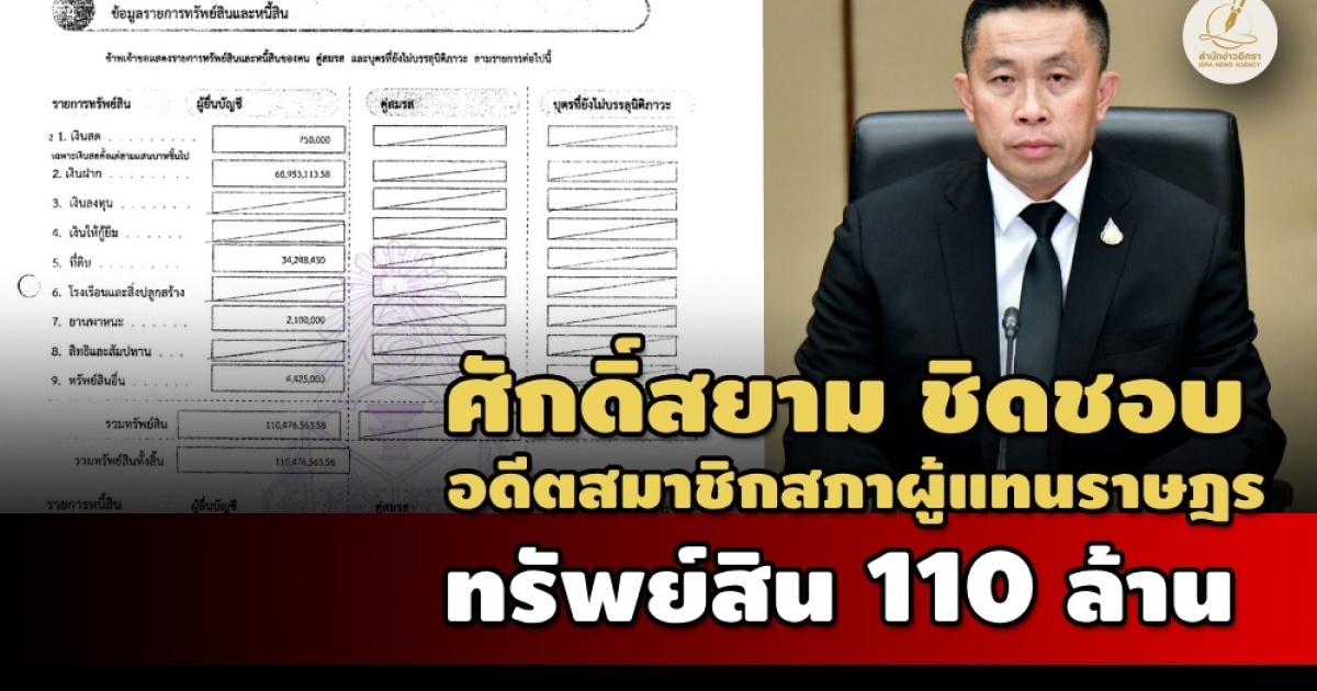 โดยนายศักดิ์สยาม แจ้งมีทรัพย์สินทั้งสิ้น 110,476,563.58 บาท ไร้หนี้สิน ทรัพย์สินประกอบด้วย
