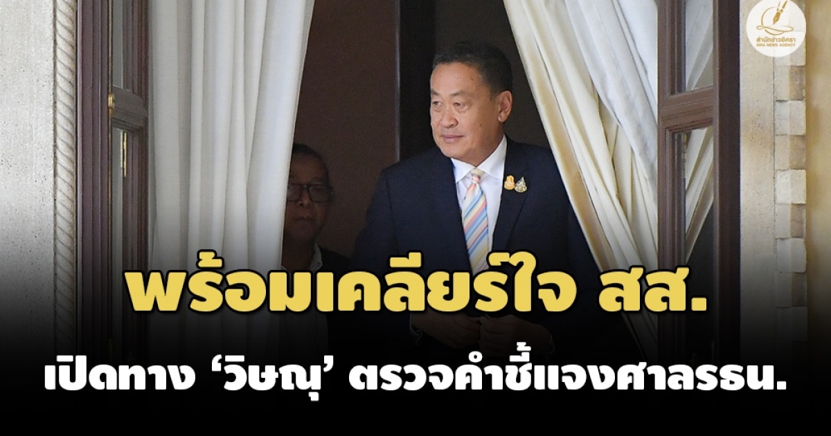 ‘เศรษฐา’ รับทราบกระแสความไม่พอใจของ สส.เพื่อไทย หลัง ‘วิษณุ’ รีเทิร์นทำเนียบฯ ระบุพร้อมเข้าไปเคลียร์ใจ สส.แล้ว ส่วนกรณี ‘อุ๊งอิ๊ง’ กล่อมพรรคให้หนุนการทำงาน ก็ได้ฟังจากข่าว ขณะทีการชี้แจงศาลรัฐธรรมนูญ เปิดทาง ‘เนติบริกร’ ตรวจคำชี้แจง มั่นใจส่งทัน 10 มิ.ย.นี้