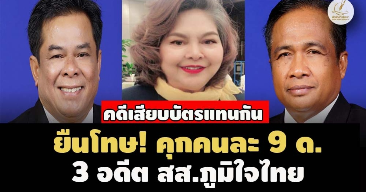ศาลฎีกาชั้นอุทธรณ์พิพากษายืนตามศาลชั้นต้น ลงโทษจำคุก 9 เดือน ไม่รอลงอาญา 3 อดีตสส.ภูมิใจไทย คดีเสียบบัตรแทนกัน ชี้อุทธรณ์ขอลดโทษจำเลยฟังไม่ขึ้น พฤติการณ์ไม่ซื่อสัตย์ต่อการปฏิบัติหน้าที่ -ไม่ให้เอาเป็นเยี่ยงอย่าง