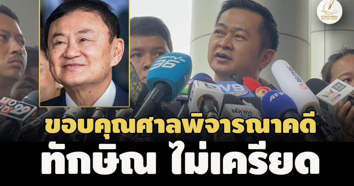 "วันนี้นายทักษิณไม่ได้มีอาการเครียดใด ๆ พร้อมฝากขอบคุณมวลชนที่มาให้กำลังใจและให้ความสนใจ มั่นใจจะได้รับความยุติธรรม และคดีนี้ไม่มีการกำหนดรายงานตัวระหว่างปล่อยตัวชั่วคราว แต่คดีนี้เป็นคดีที่คดีที่มีอัตราโทษ 10 ปีขึ้นไป ไม่สามารถพิจารณาลับหลังได้ ยกเว้นศาลอนุญาต นั่นหมายความว่า นายทักษิณต้องเดินทางมาด้วยตัวเองในนัดต่อ ๆ ไป"