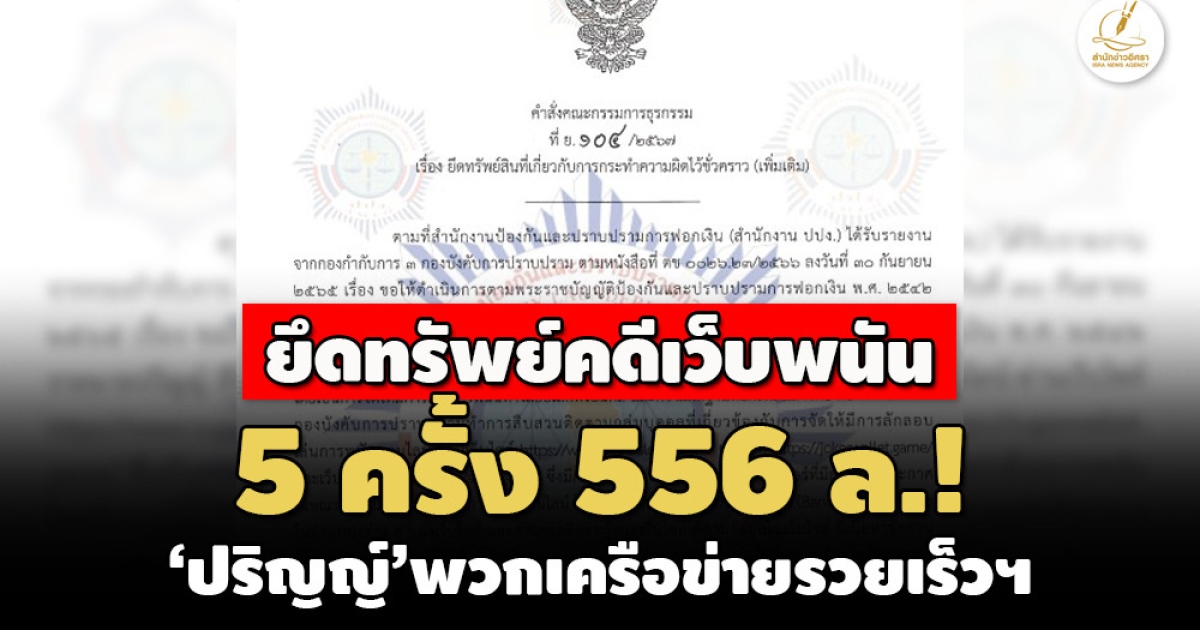 (ข่าวก่อนหน้า: ปปง.ยึดทรัพย์คดีเว็บพนัน ‘ปริญญ์’ พวก เครือข่ายรวยเร็วฯ 4 ลอต 554.1 ล.)