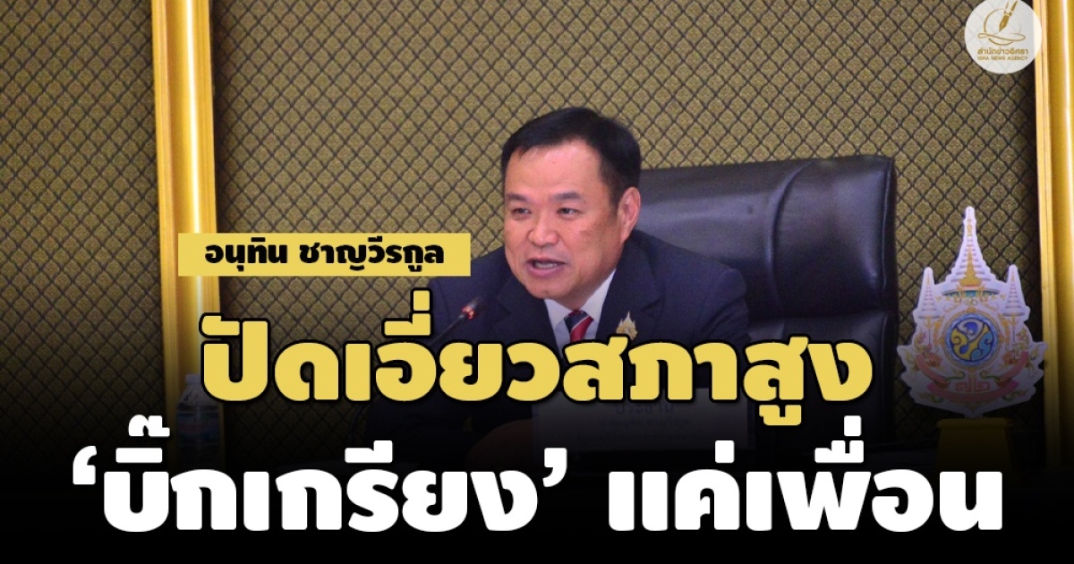 ‘อนุทิน’ แจงไม่เกี่ยว สว.บุรีรัมย์-พรรคสีน้ำเงินยึดสภาสูง ชี้เป็นเรื่องของกระบวนการ โอดให้ร้ายกันอยู่เรื่อย ระบุสัมพันธ์กับ ‘บิ๊กเกรียง’ ในฐานะเพื่อนเท่านั้น ไม่ทราบชิงประธานวุฒิสภา