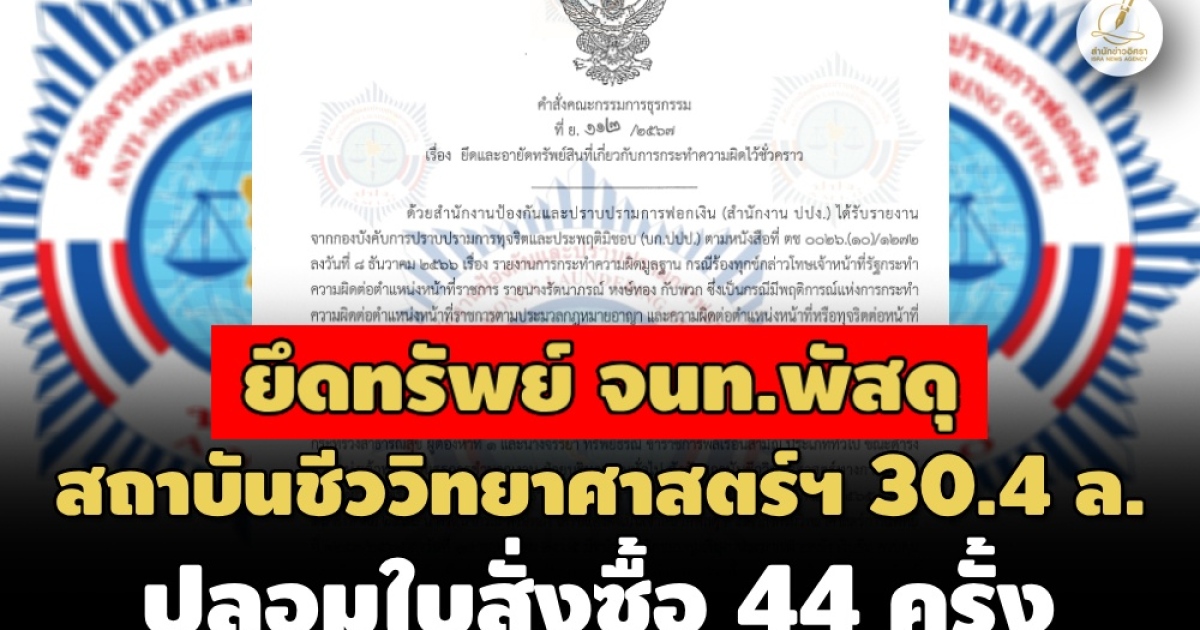 ปปง.สั่งยึดอายัดทรัพย์ ‘รัตนาภรณ์ หงษ์ทอง’ อดีต จนท.พัสดุ สถาบันชีววิทยาศาสตร์ทางการแพทย์ ก.สาธารณสุข กับพวก 77 รายการ 30.4 ล้าน ทั้ง เงินฝาก รถยนต์ ที่ดินบ้าน 8 แปลง พฤติการณ์ปลอมเอกสารใบสั่งซื้อวัสดุจากเอกชน 44 ครั้งไม่มีสินค้า กลับเบิกจ่ายเงินเสียหาย 4.3 ล. เหตุเกิดปีงบฯ 2566