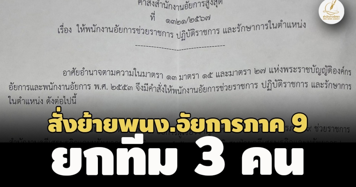 อสส.ลงนามคำสั่งย้าย พนักงานอัยการ ภาค 9 ยกทีม 3 คนรวด มีผลตั้งแต่ 1 ก.ค.2567 ที่ผ่านมา เผยเหตุมีผลเกี่ยวพันมาจากการสั่งไม่ฟ้องคดี ลูกชาย ประพร เอกอุรุ อดีต สส.สงขลา