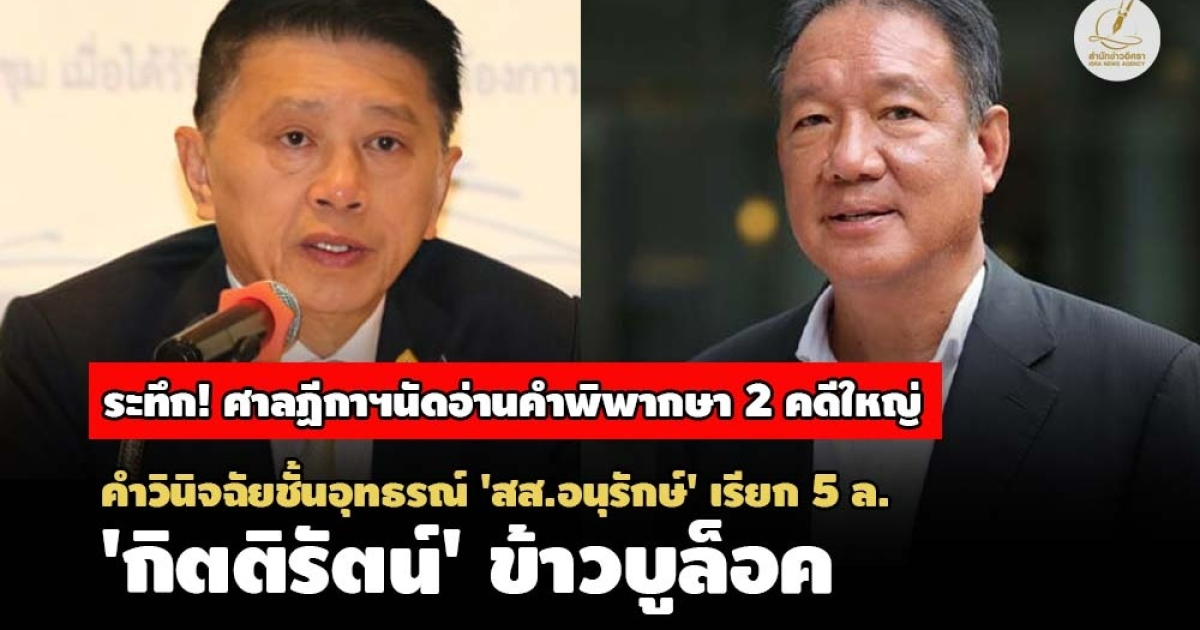 สำนักข่าวอิศรา (www.isranews.org) รายงานว่า ในช่วงกลางเดือน ก.ค.2567 นี้ ศาลฎีกาแผนกคดีอาญาของผู้ดำรงตำแหน่งทางการเมือง (ศาลฏีกา อม.) นัดฟังคำพิพากษาคดีความผิดต่อตำแหน่งหน้าที่ราชการ ของนักการเมืองชื่อดัง 2 ราย คือ นายอนุรักษ์ ตั้งปณิธานนท์ อดีตสมาชิกสภาผู้แทนราษฎร (สส.) มุกดาหาร พรรคเพื่อไทย และ นายกิตติรัตน์ ณ ระนอง อดีตรัฐมนตรีว่าการกระทรวงพาณิชย์ ในสมัยรัฐบาล นางสาวยิ่งลักษณ์ ชินวัตร ดำรงตำแหน่ง นายกรัฐมนตรี