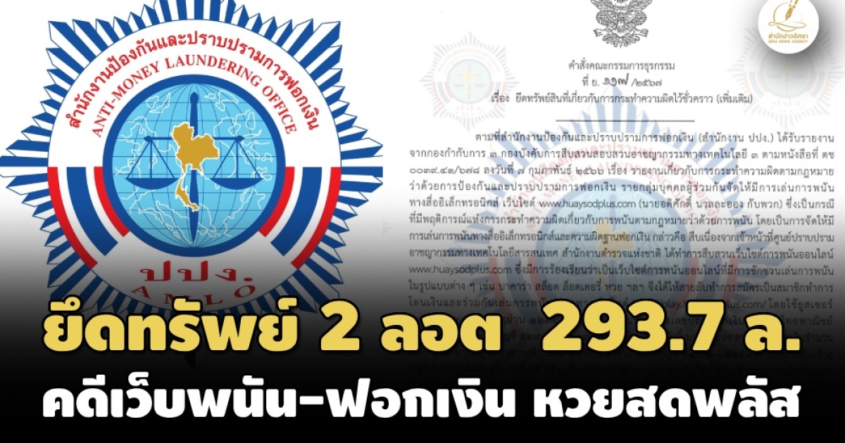 ปปง.สั่งยึดทรัพย์ลอต 2 ‘อดิศักดิ์ นวลละออง’ กับพวก กลุ่มบุคคลจดในเล่น เว็บพนันออนไลน์ หวยสดพลัส อีก 96.1 ล. ก่อนหน้าโดน 289 รายการ 107.5 ล. รวม 2 ครั้ง 293.7 ล้าน