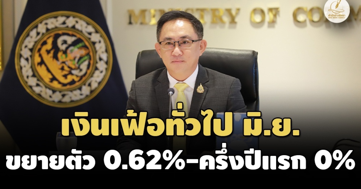 ‘พาณิชย์’ เผยเงินเฟ้อทั่วไป มิ.ย.67 โต 0.62% ขยายตัวต่อเนื่องเป็นเดือนที่ 3 แต่ชะลอตัวจากเดือนก่อน ขณะที่ 6 เดือนแรกปีนี้ เงินเฟ้อทั่วไปโต 0% คงเป้าทั้งปี 67 ที่ 0-1%