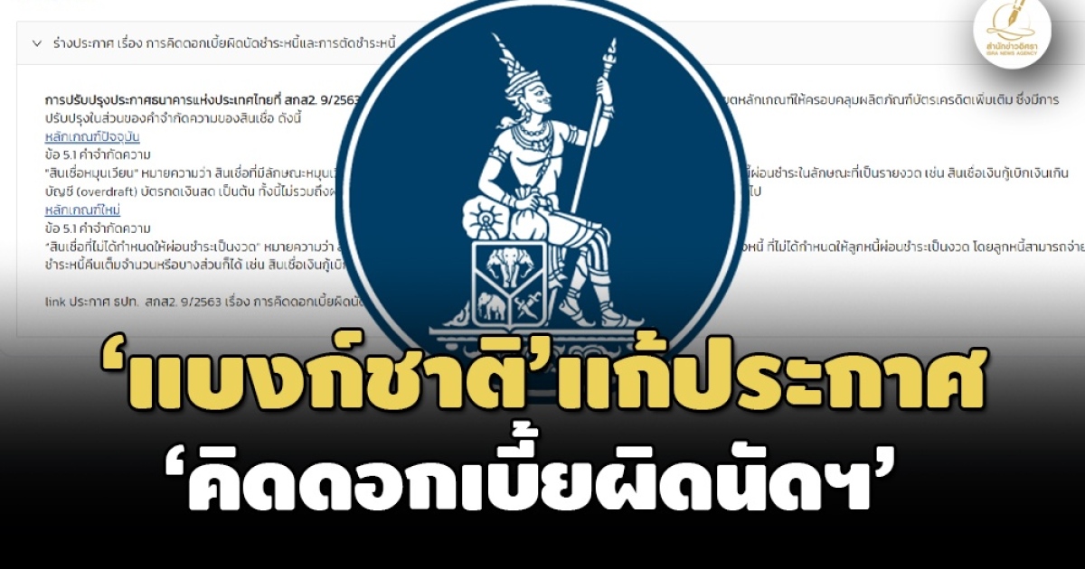รายงานข่าวแจ้งด้วย ธปท.ให้เหตุผลการปรับปรุงประกาศฯ ว่า เดิม ธปท. ได้ออกประกาศธนาคารแห่งประเทศไทย ที่ สกส2. 9/2563 เรื่อง การคิดดอกเบี้ยผิดนัดชำระหนี้และการตัดชำระหนี้ ลงวันที่ 9 ต.ค.2563 กำหนดให้ผู้ให้บริการทางการเงิน (ผู้ให้บริการ) คิดอัตราดอกเบี้ยผิดนัดชำระหนี้เพิ่มขึ้นจากอัตราดอกเบี้ยปกติสูงสุดที่เรียกเก็บจริงตามที่ระบุในสัญญาได้ไม่เกินร้อยละ 3 ต่อปี คำนวณบนฐานเงินต้นที่ค้างชำระ