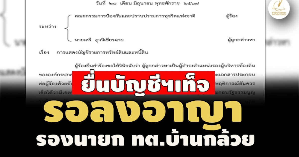 • ศาลฎีกาฯพิพากษารองนายก ทต.บ้านกล้วย ชัยนาท ยื่นบัญชีฯเท็จ คุก 1 เดือน ให้รอลงโทษ