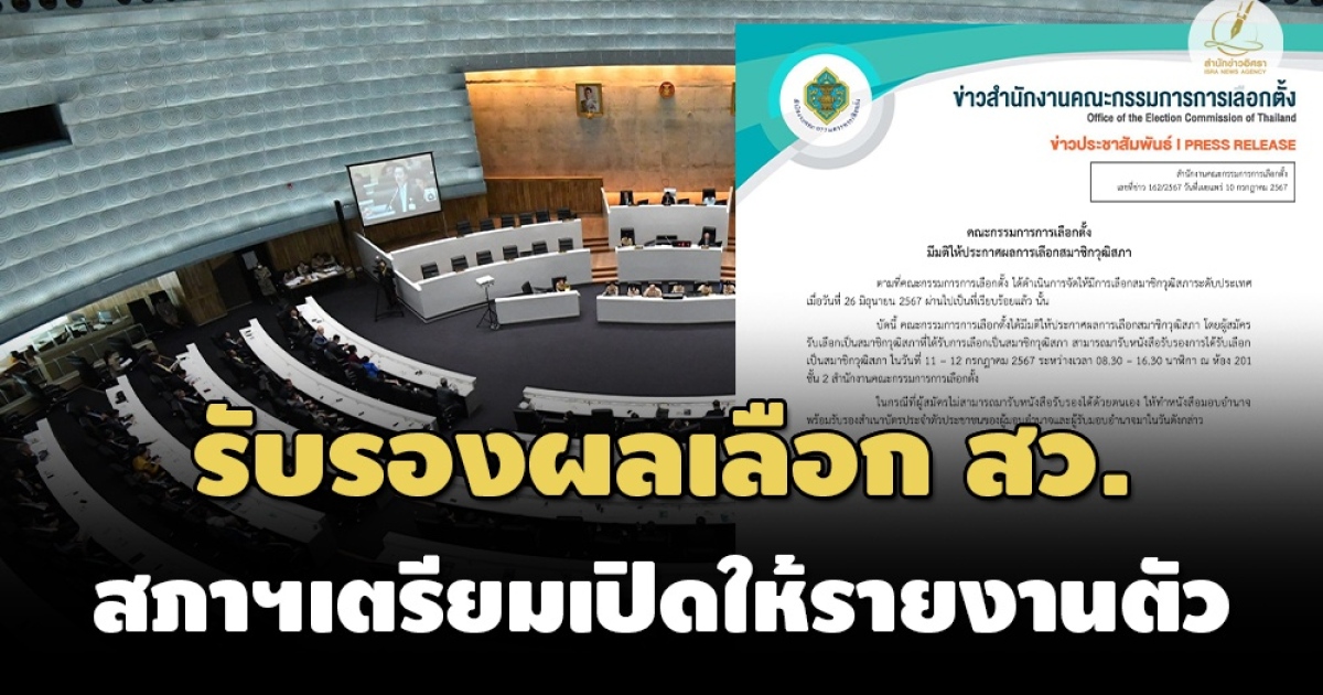 ต่อมา นายแสวง บุญมี เลขาธิการ กกต.แถลงข่าวว่า พระราชบัญญัติประกอบรัฐธรรมนูญ (พ.ร.ป.) ว่าด้วยการได้มาซึ่งสมาชิกวุฒิสภา (สว.) 2561 หลังเลือกตั้ง สว. ระดับประเทศเสร็จสิ้น กกต. ต้องรอไว้ไม่น้อยกว่า 5 วัน ตามกฎหมายคือหลังวันที่ 3 กรกฎาคม 2567 เป็นต้นมา สามารถประกาศได้