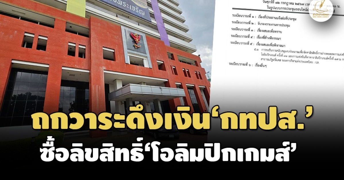 สำนักข่าวอิศรา (www.isranews.org) รายงานว่า ในช่วงบ่ายวันนี้ (12 ก.ค.) ที่ประชุมคณะกรรมการกิจการกระจายเสียงกิจการโทรทัศน์และกิจการโทรคมนาคมแห่งชาติ (กสทช.) นัดพิเศษ จะมีการพิจารณาในวาระการขอรับการสนับสนุนงบประมาณเพื่อจัดหาลิขสิทธิ์การถ่ายทอดสดการแข่งขันกีฬาโอลิมปิกเกมส์ ครั้งที่ 33 และการแข่งขันกีฬาพาราลิมปิกเกมส์ครั้งที่ 17 ณ กรุงปารีส ฝรั่งเศส ของการกีฬาแห่งประเทศไทย (กกท.)
