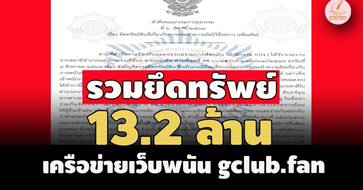 ปปง.ยึดทรัพย์เพิ่มรถยนต์ 3 คัน 2 ล้าน คดีเล่นพนันเว็บไซต์ www.gclub.fan กลุ่ม ‘สมร จันทร์ฉุน’ กับพวก ก่อนหน้าอายัดเงินฝาก 37 บัญชี 11.1 ล. ถูกศาลสั่งจำคุกคนละ 15 วัน ปรับ 500 บาท รอการลงโทษ 1 ปี