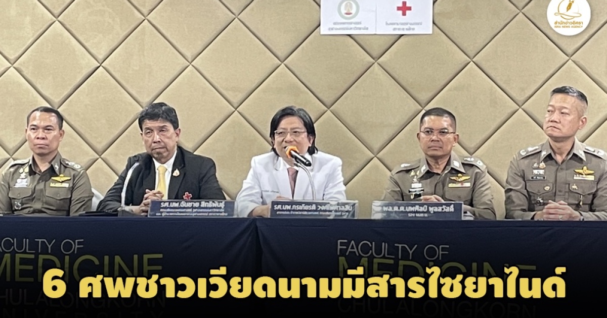 ด้าน รศ.นพ.ฉันชาย กล่าวว่า เบื้องต้นจากลักษณะที่ตรวจพบทั้งภายนอกและอวัยวะภายในไม่พบว่ามีปัจจัยอื่นๆที่เป็นเหตุให้เสียชีวิตนอกจากสารไซยาไนด์ ต้องรอผลตรวจอวัยวะภายในเชิงลึกเพื่อหาสารบางอย่างเพิ่มเติม แต่เบื้องต้นหากได้รับสารไซยาไนด์ในปริมาณเกิน 3 มิลลิกรัมต่อเลือด 1 cc. หรือรับในปริมาณมากผ่านการกินดื่ม จะทำให้ผู้ป่วยมีอาการเหงื่อออกชักเกร็ง เพราะขาดออกซิเจนในสมองเฉียบพลัน ก่อนเสียชีวิต