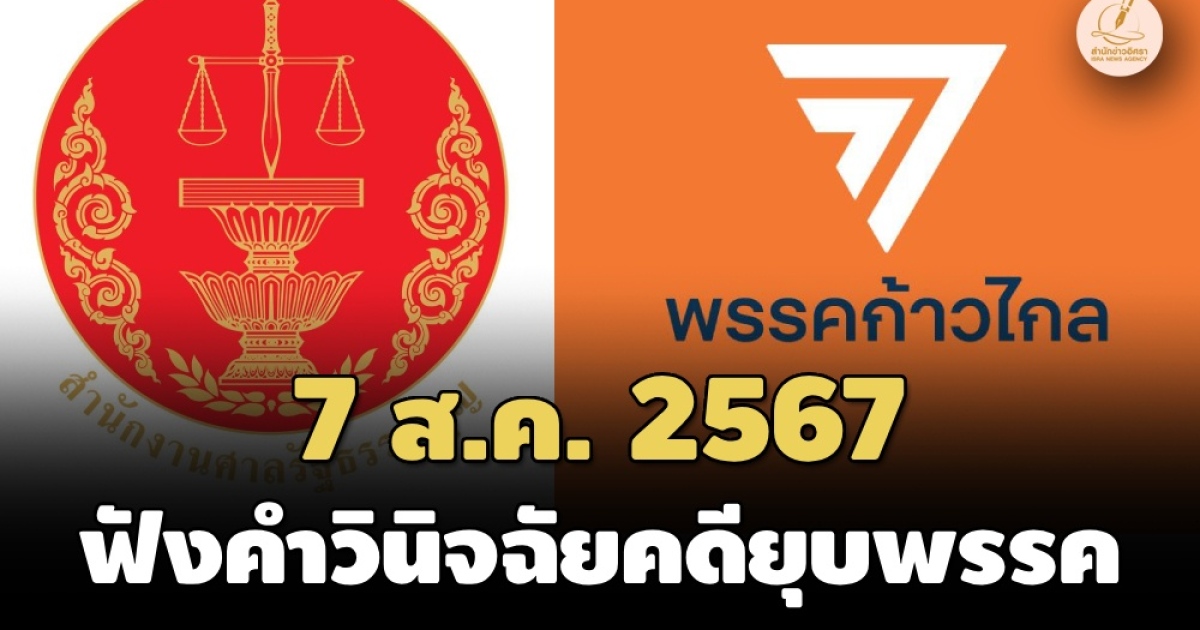 ศาลรัฐธรรมนูญนัดฟังคำวินิจฉัยคดียุบพรรคก้าวไกล 7 ส.ค. 2567 เวลา 15.00 น.