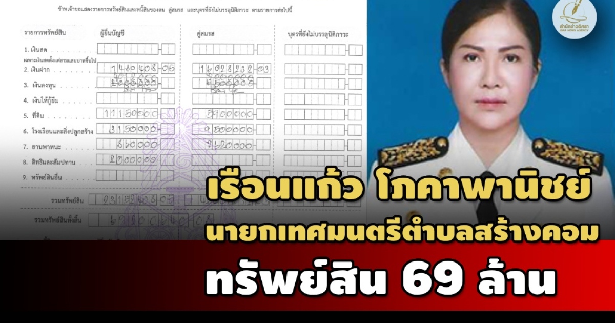 ป.ป.ช. เปิดทรัพย์สิน 'เรือนแก้ว โภคาพานิชย์' นายกเทศมนตรีตำบลสร้างคอม จ.อุดรธานี ทรัพย์สิน 69 ล. ที่ดิน 13 แปลง 11 ล. รายได้ 1.4 ล./ปี